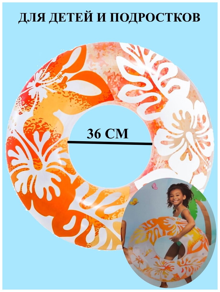 Купить Надувной круг для плавания оранжевый 91 см, круг для купания цветы и листья, круг яркий для моря, надувной круг 91 см, надувной круг для бассейна