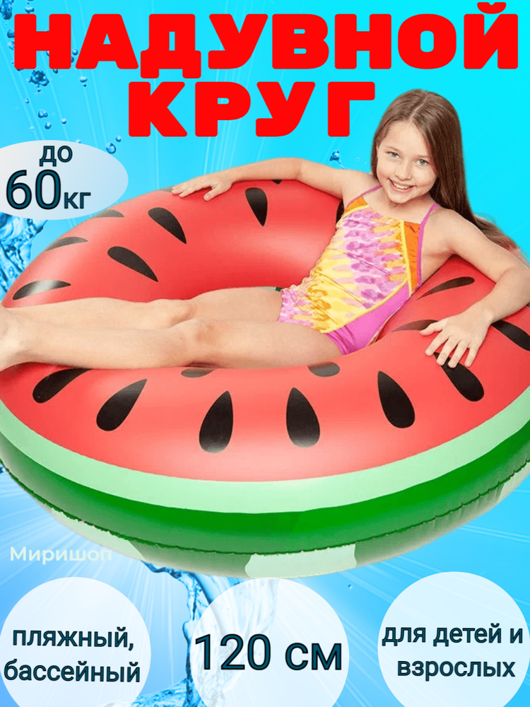 Пляжный, бассейный надувной круг для плавания Красный Арбуз Watermelon - 120 см интересное:
