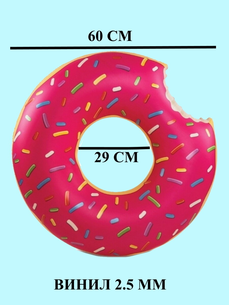 Надувной круг для плавания пончик 60 см, круг для купания пончик 60 см, круг пончик для моря, надувной круг 60, надувной круг для бассейна интересное: