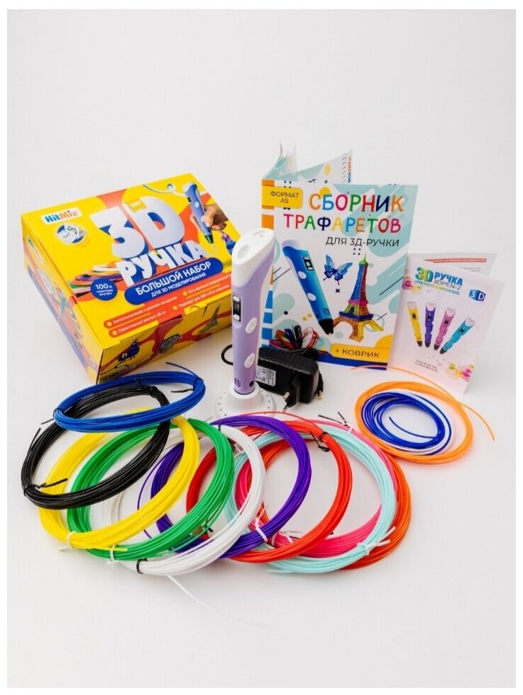 Купить 3д ручка с набором пластика и трафаретами / Большой набор для 3D моделирования фиолетовая