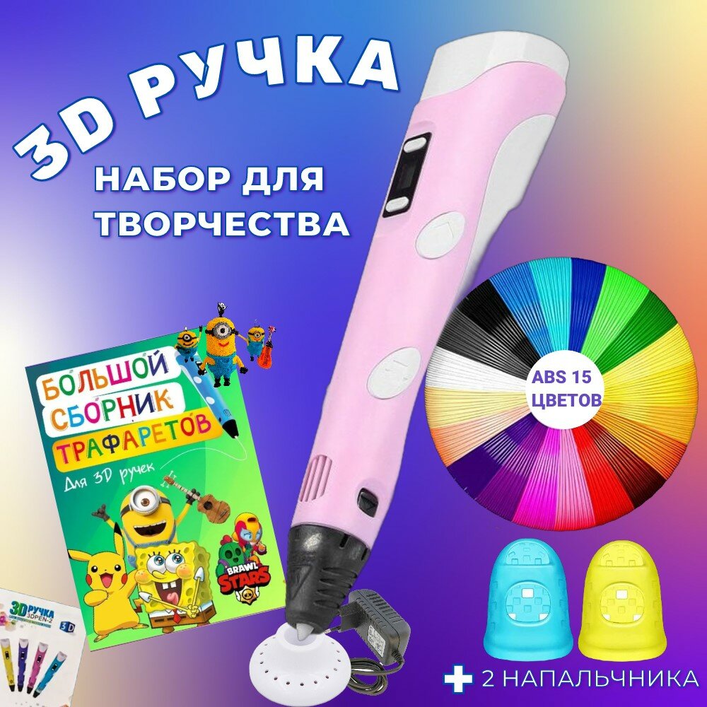 3D ручка с комплектом пластика ABS 150м/Книжка трафаретов/Прозрачный коврик. Цвет розовый. интересное: