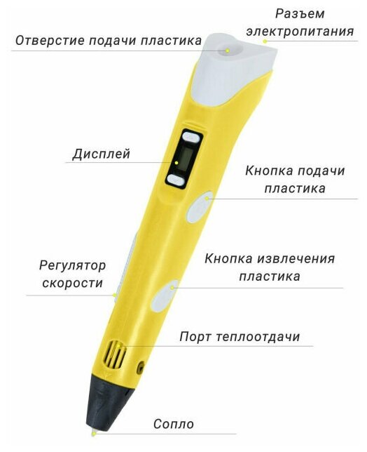 Комплект 3Д ручка NIT-PEN3 желтая + пластик PLA 10 цветов по 10 метров, в упаковке: 1