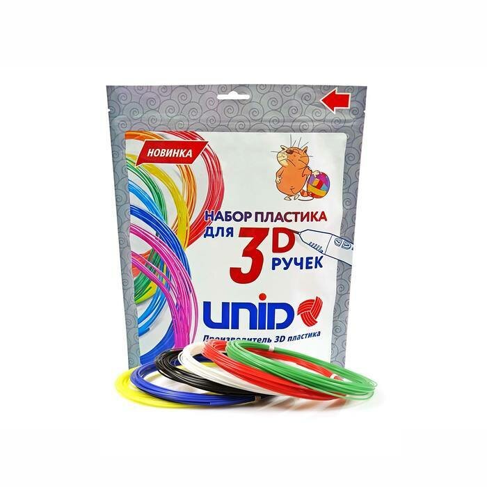 Пластик UNID PLA-6, для 3Д ручки, 6 цветов в наборе, по 10 метров Unid 1396089 .