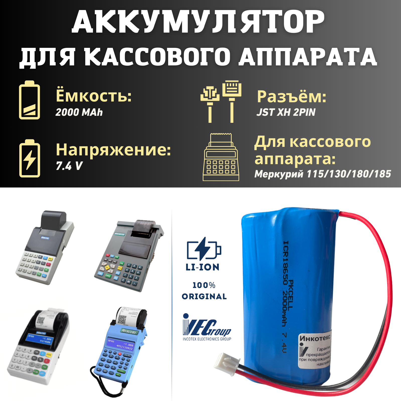 Аккумулятор для контрольно-кассовой техники Меркурий 115ф/130ф/180ф/185ф. 18650 7,4V 2000 mAh 14,8Wh интересное: