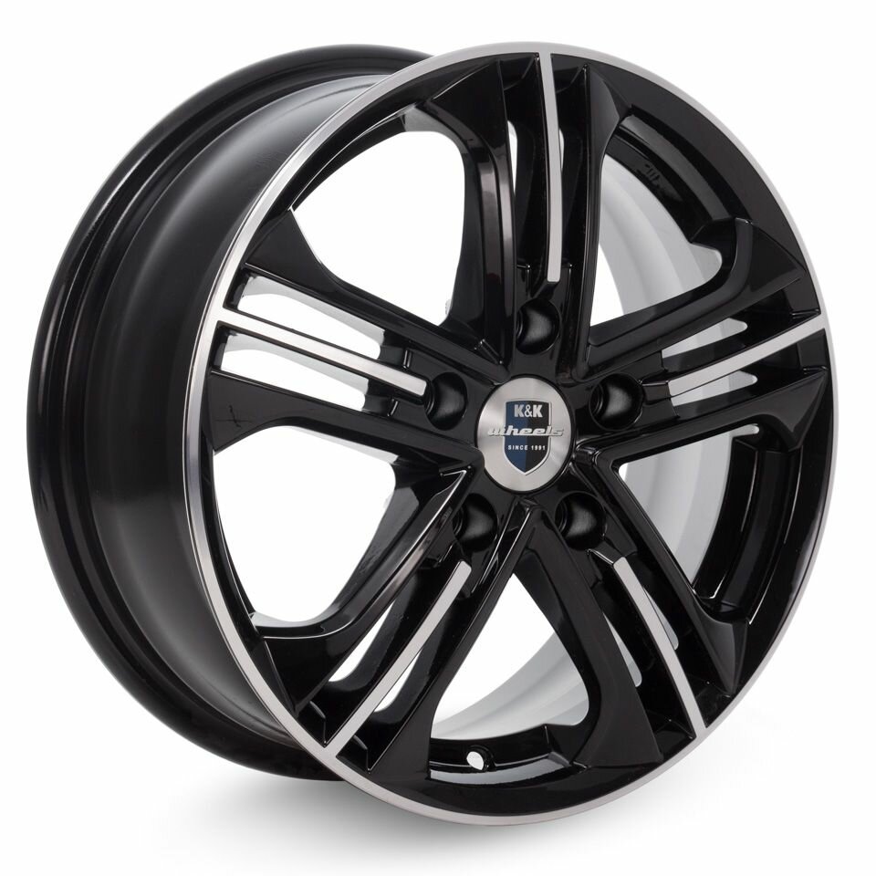 Литые колесные диски КиК (K&K) Trinity (КС615) 6x15 5x108 ET43 D67.1 Чёрный глянцевый с полированной лицевой частью (14074)