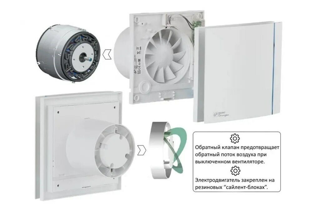 Вентилятор вытяжной SILENT-100 CZ DESIGN для кухни/ ванной/ санузла, со световым индикатором и обратным клапаном, белый