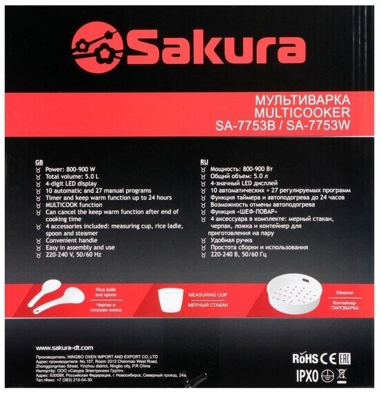 Мультиварка Sakura Sa-7753w, 800 Вт, 5 л, 37 программ, с антипригарным покрытием Sakura 1280824 .