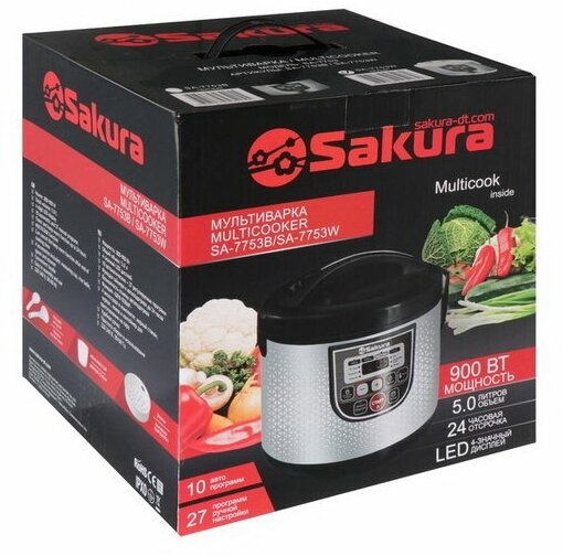 Мультиварка SA-7753B 800 Вт, 5,0л, мультиповар, 37 программ, LED дисплей, SAKURA
