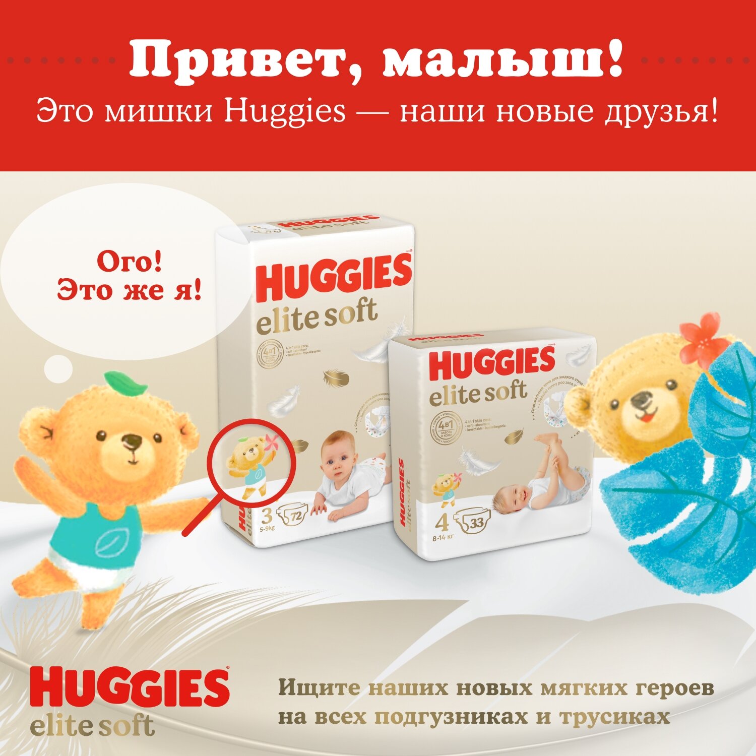 Huggies подгузники Elite Soft 4 (8-14 кг), 33 шт.