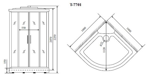 | Плюсы: | Оптимальный размер, комфортный для нахождения внутри, и места много не занимает. Хорошо работает вентиляция. Низкий поддон, удобно заходить в кабину. |