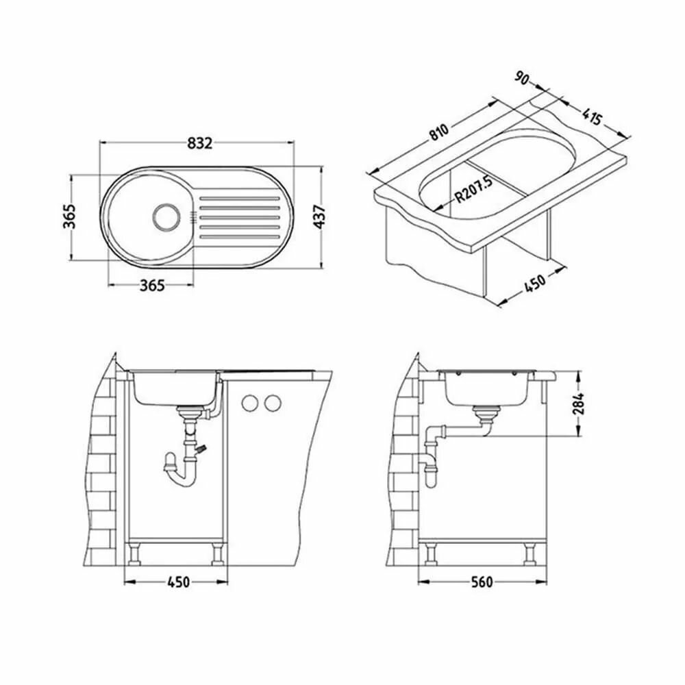 Мойка FORM 40 LEI-90 832X437 в комплекте с сифоном. Раковина для кухни. Мойка для кухни. Мойка кухонная. Раковина + сифон
