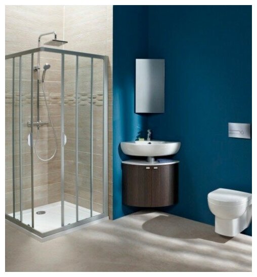 | Плюсы: | В отличие от большинства других угловых раковин выглядит прилично. Форма позволяет поставить на край раковины дозатор для жидкого мыла |