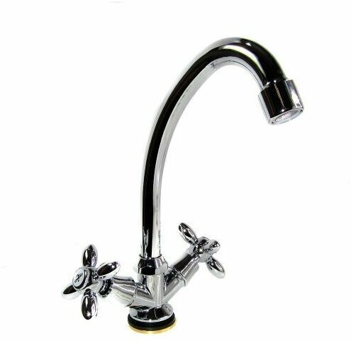 Высокий двухвентильный смеситель для кухонной мойки с поворотным изливом Ledeme L4927 хром
