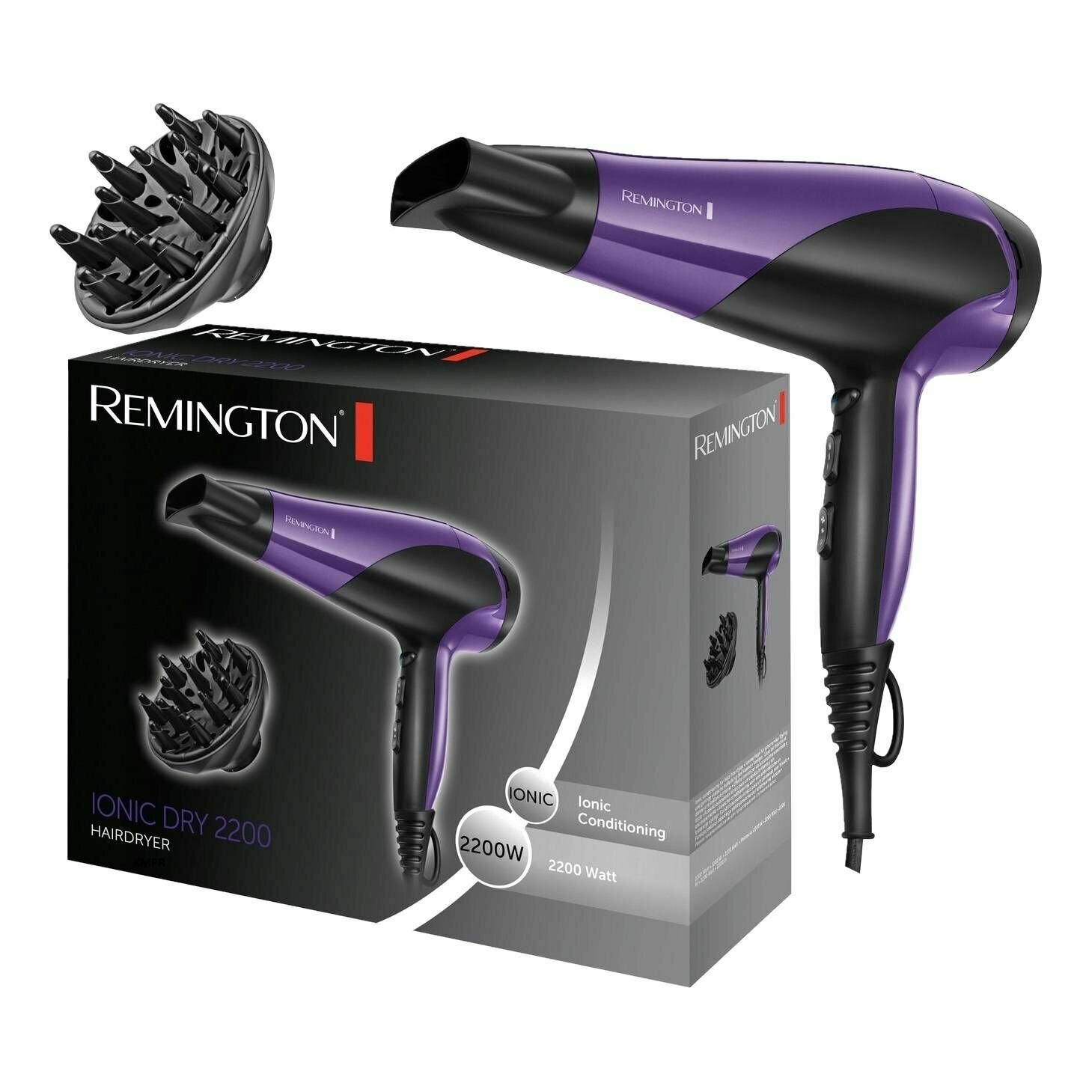 Фен Remington, Набор для укладки волос Ionic Dry D3190, фиолетовый/черный