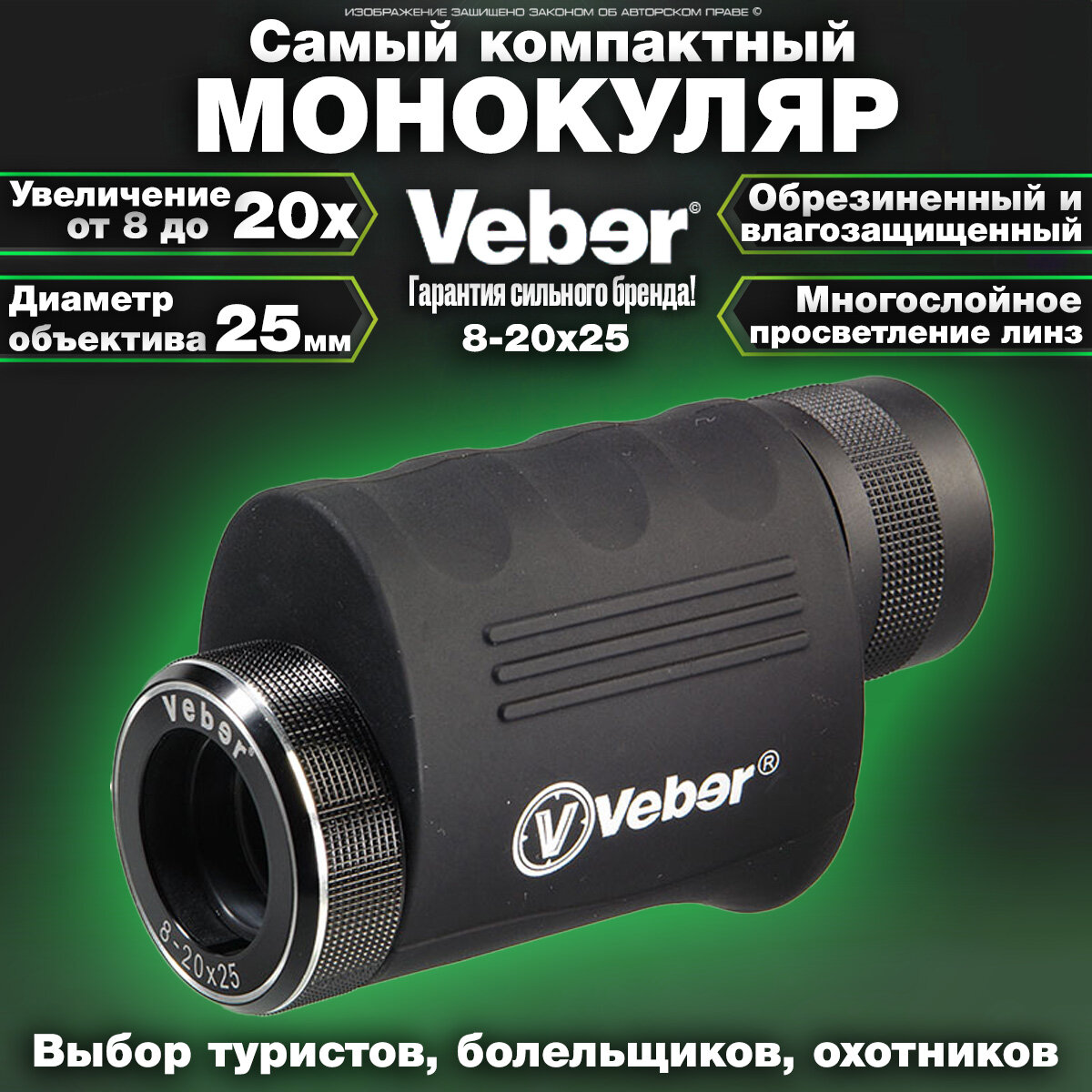 Монокуляр Veber 8-20x25, черный, арт. 23149, пыле- и влагозащищенный интересное:
