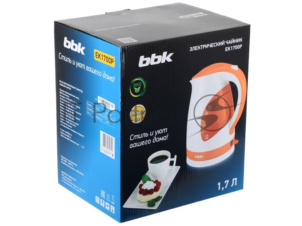 BBK Чайник BBK EK1700P, электрический, бело-оранжевый (2200Вт, 1.7л) (ret)