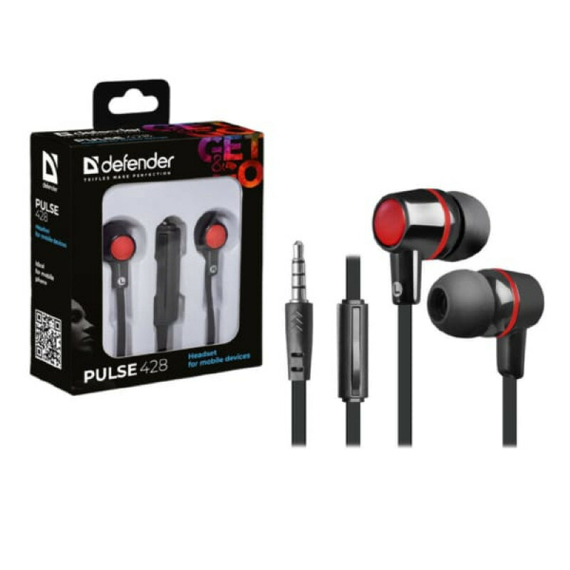 Наушники с микрофоном Defender Pulse 428 (63428) черный/красный, вкладыши, проводные