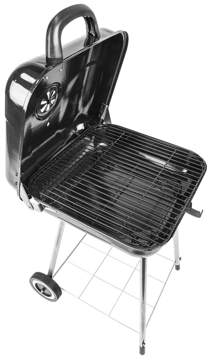 | Плюсы: | Небольшой вес при достаточно больших размерах. При этом корпус достаточно надёжный, прочный, поверхность для жарки вполне достаточная. Есть отверстие для отвода дыма при закрытой крышке (дожаривание при догорании топлива). Есть полка между ножками. |