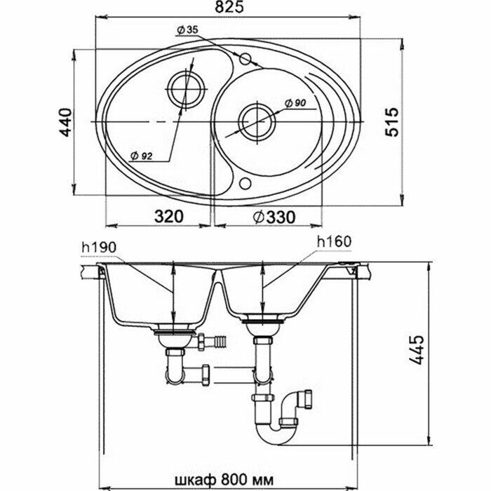Мойка кухонная овальная Ewigstein Elegant (E-W90KF черный)
