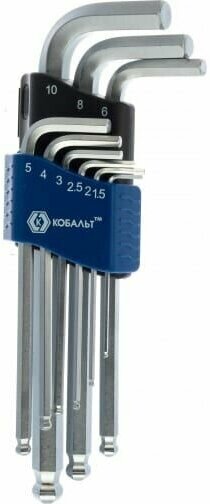 СохранитьКобальт Набор ключей угловых шестигранных 1.5, 2, 2.5, 3, 4, 5, 6, 8, 10 ммс шаром Cr-V блистер интересное: