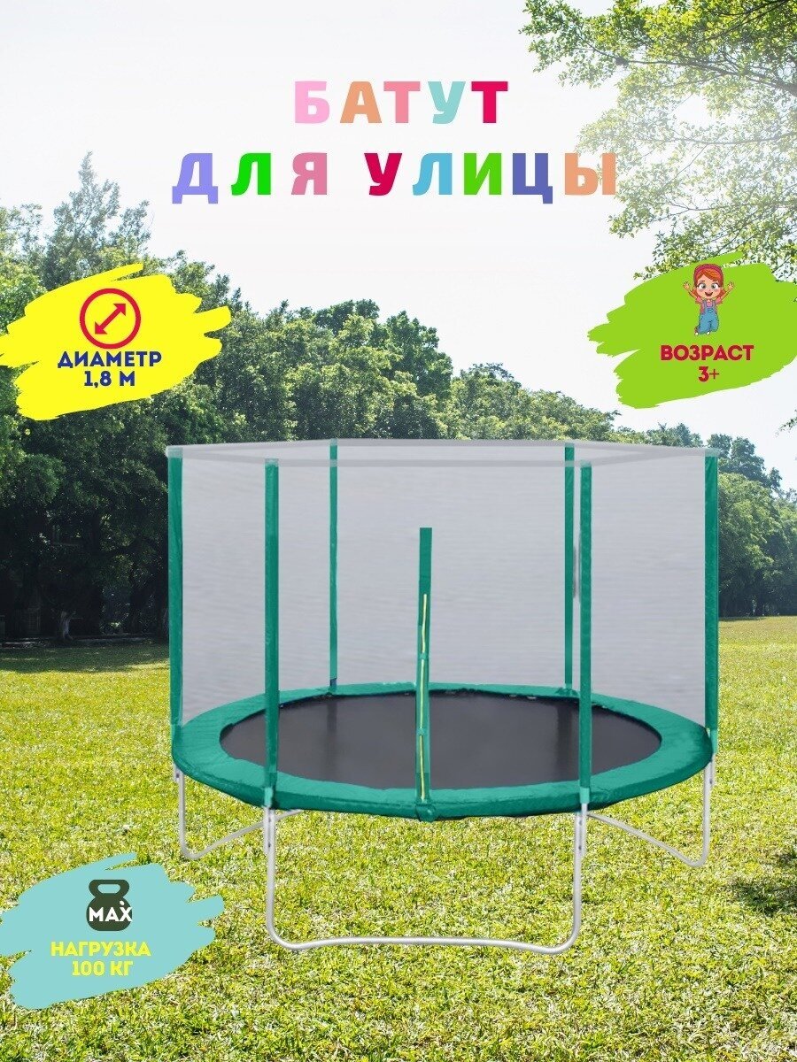 Батут с защитной сеткой "Trampoline 6" диаметр 1,8 м зелёный