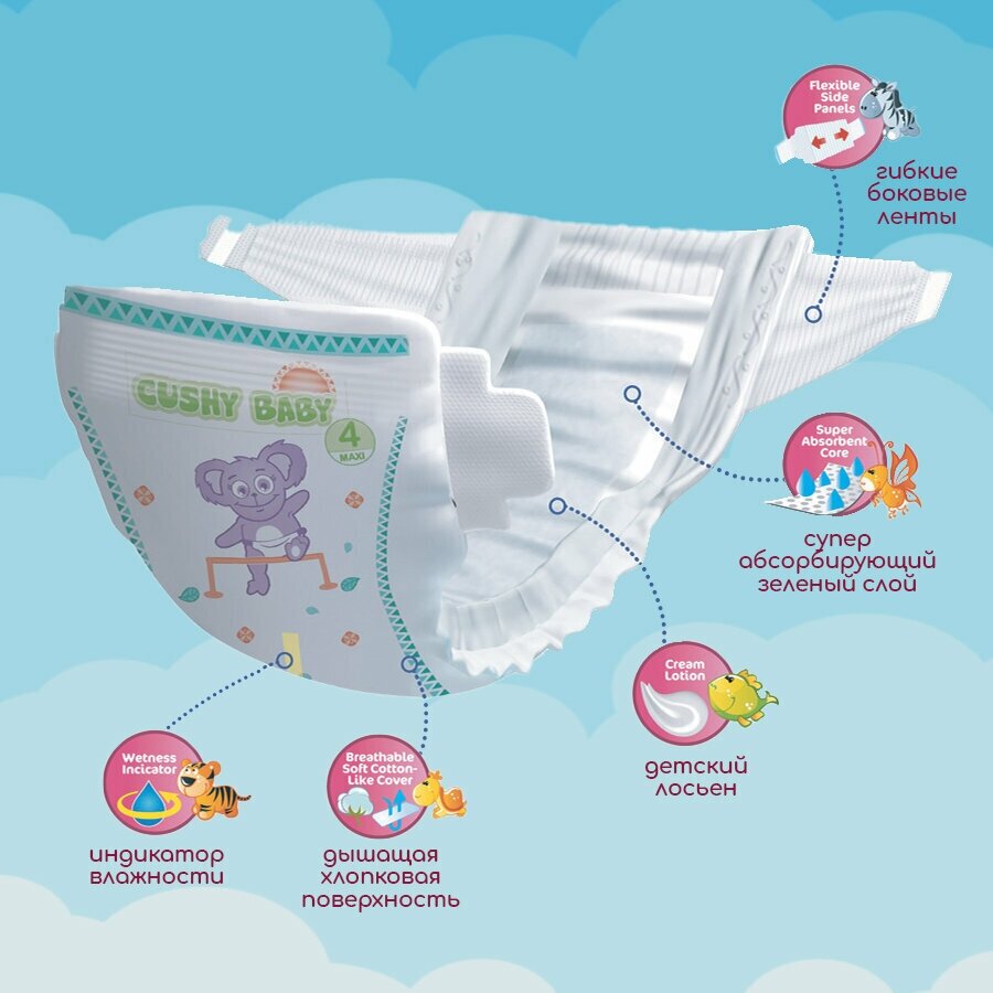 Детские подгузники 3 размер CUSHY BABY для новорожденных 4-9 кг, 180 шт. интересное: