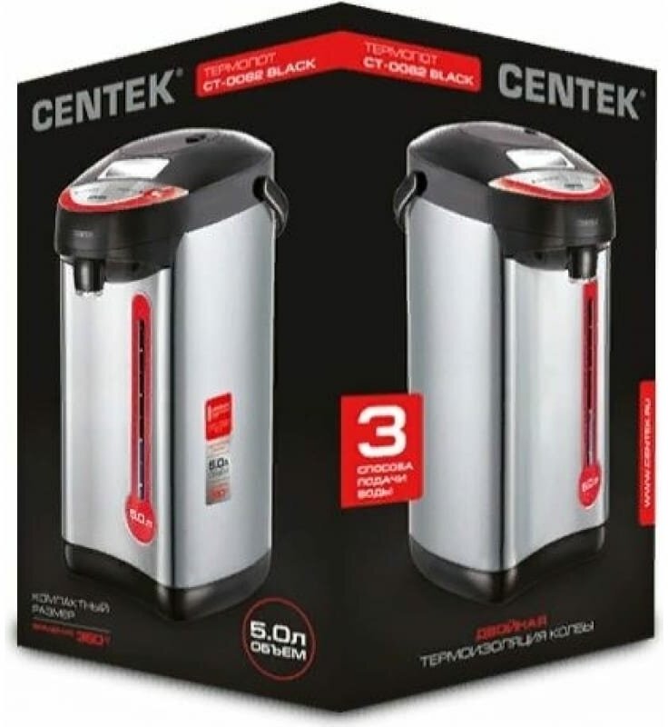 Купить Термопот / Centek CT-0082 черный / Объём 5.0 л / 750 Вт