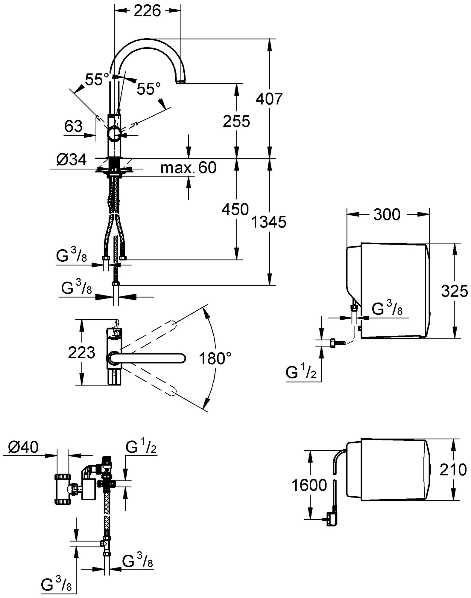 | Высота излива | 255 мм / 407 мм |