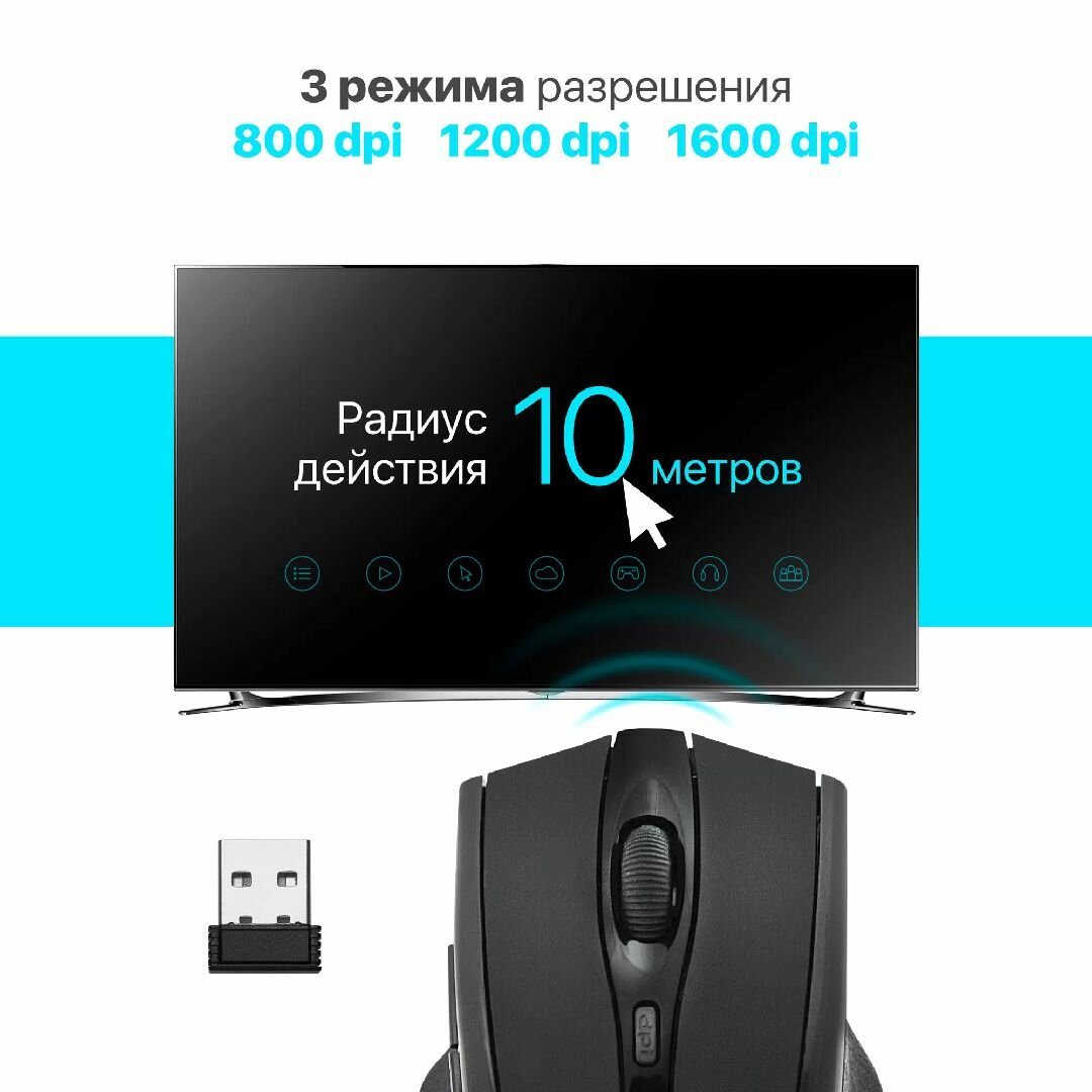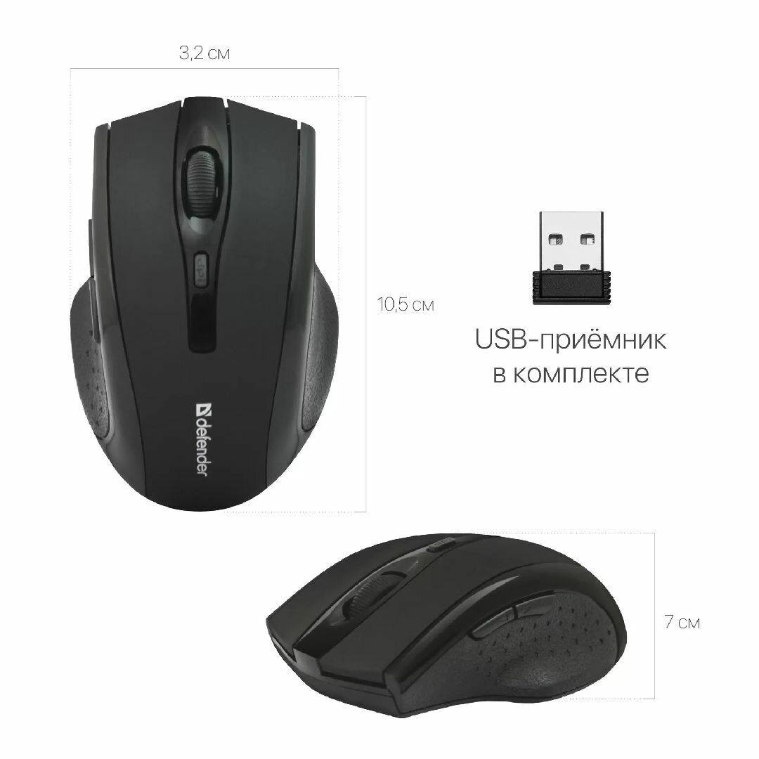 Беспроводная оптическая мышь Defender Accura MM-665 черный, 6 кнопок, 800-1600 dpi