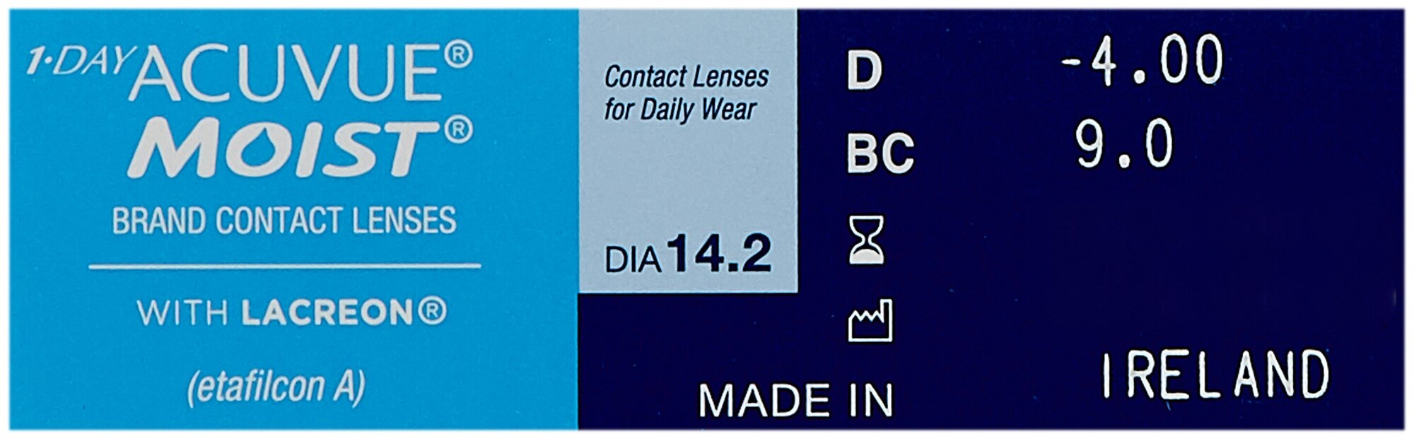 Купить Однодневные линзы Acuvue Moist 1-Day 90 pk R 9,0, D -4
