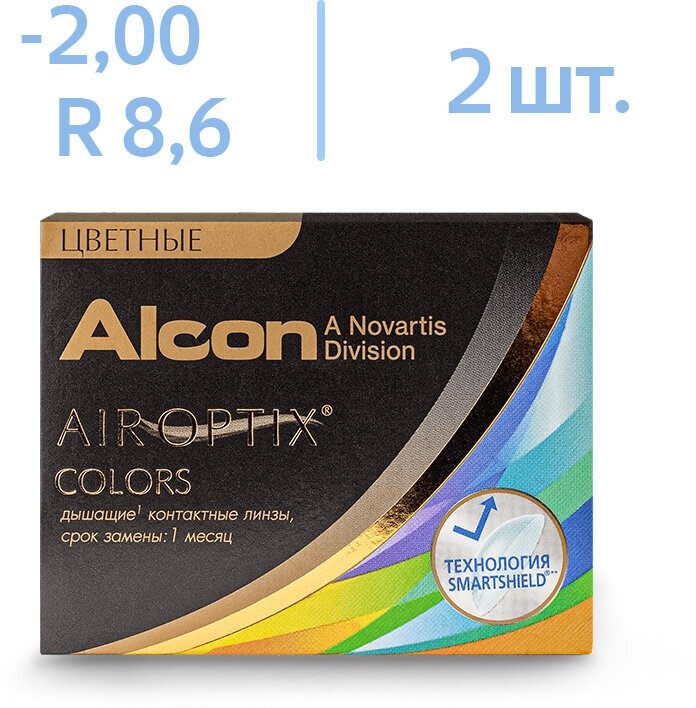 Контактные линзы Air Optix Colors R 8.6, D -2.0, Бриллиантовый Синий, DIA 14.2, 2 линзы