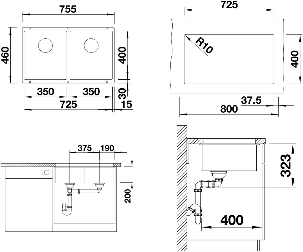 Кухонная мойка SUBLINE 350/350-U Черный