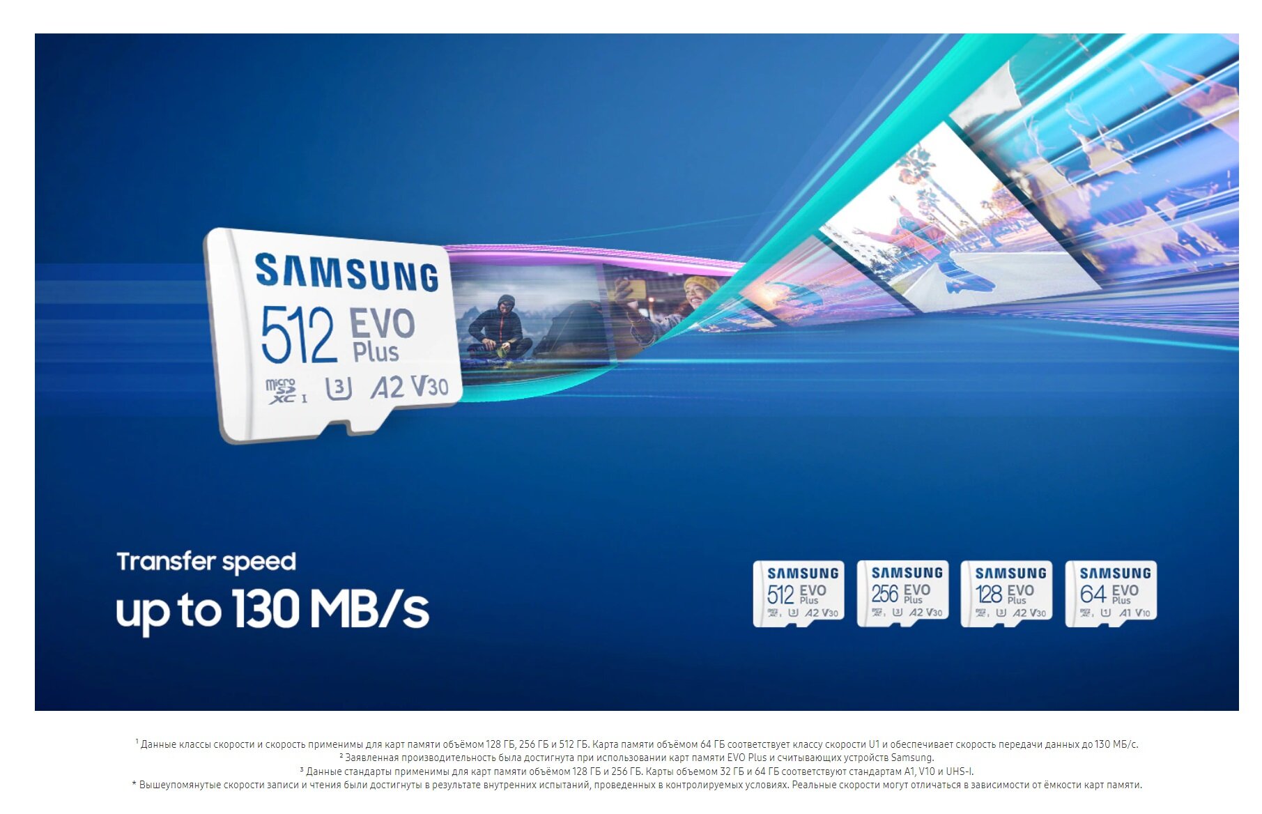 Карта памяти Samsung EVO Plus microSDHC 512 ГБ A2, UHS Class 1 запись - 130 Мбайт/сек