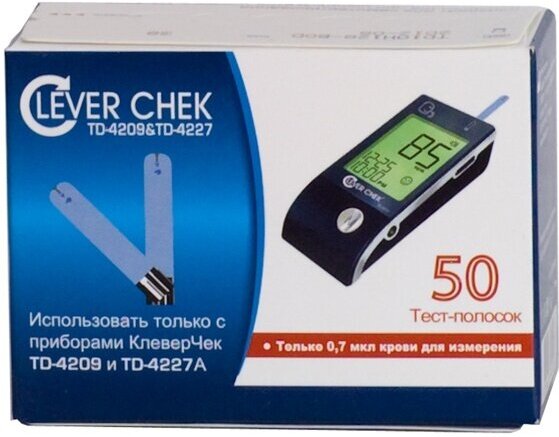 Тест-полоски CLEVER CHEK (Клевер чек) для глюкометра к приборам TD-4209, TD-4227A, TD-4227B 50 шт.
