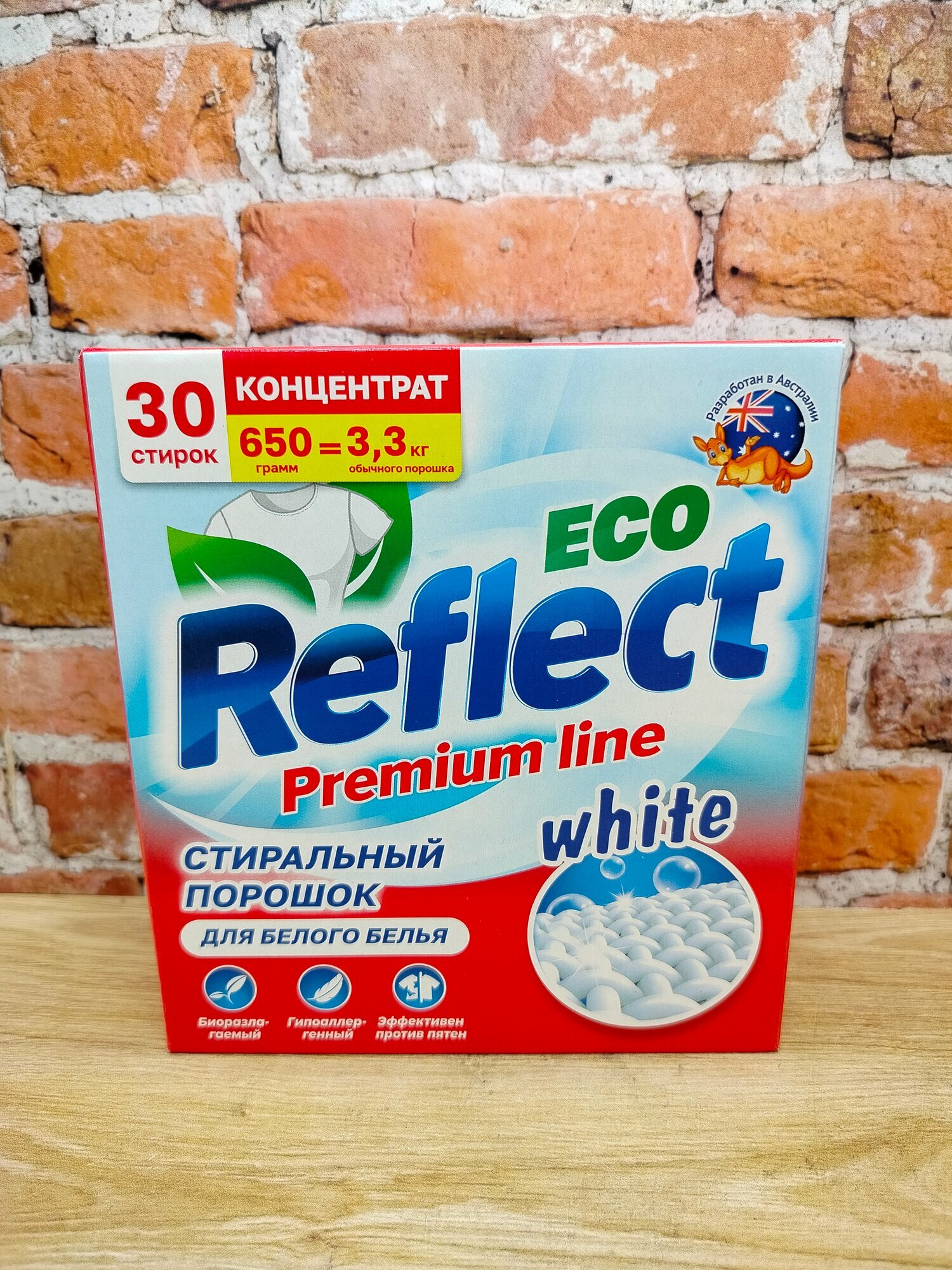Концентрированный стиральный порошок Reflect White, 650 гр, для всех видов тканей, восстановление белизны, для чувствительной кожи