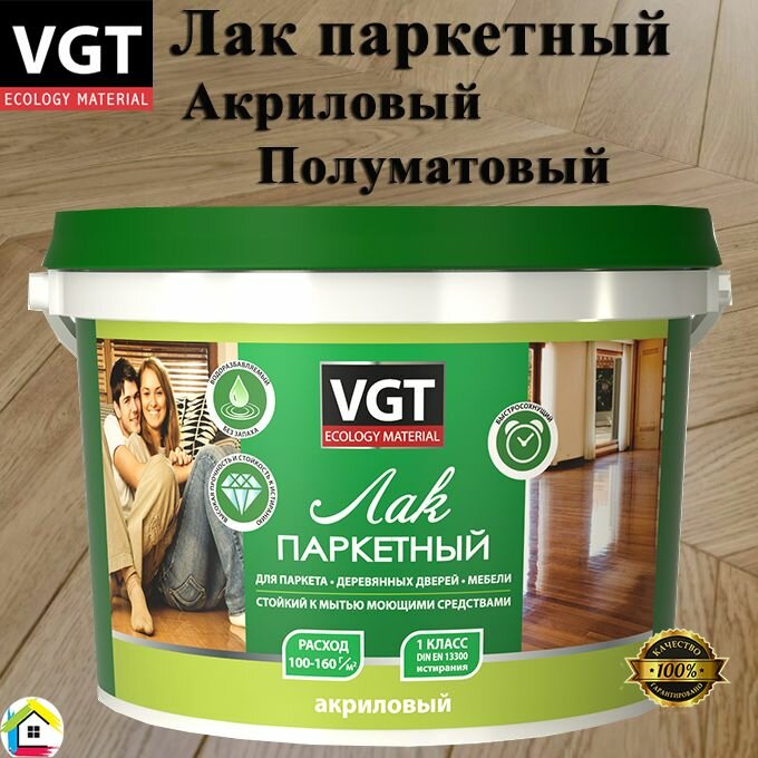 VGT Лак по дереву акриловый паркетный для пола, мебели внутри помещения, полуматовый, 0,9 кг