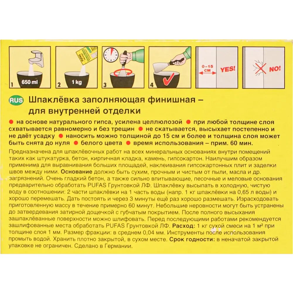 Пуфас Фулл-Финиш шпатлевка гипсовая (1кг) / PUFAS Full+Finish Spachtel шпаклевка гипсовая заполняющая фининшая (1кг)