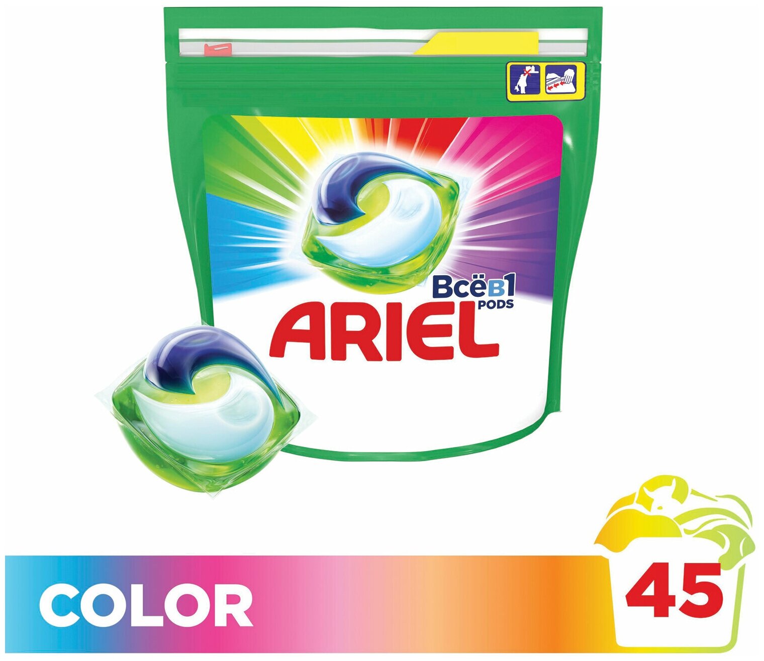Купить Ariel капсулы PODs Всё в 1 Color, пакет, 45 шт., 1.13 л