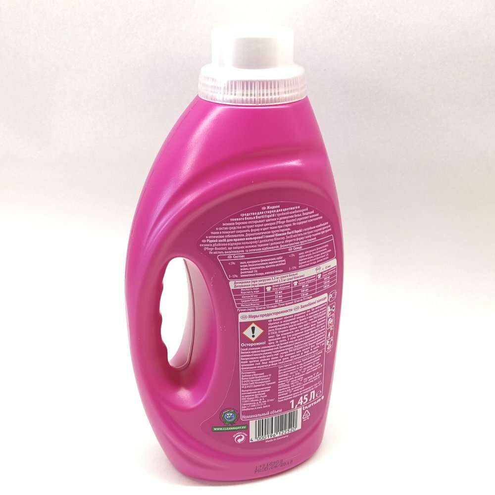 Ниже Вы можете прочитать отзывы на Жидкое синтетическое средство BURTI Liquid для цветного и тонкого белья 1,45 литра, ознакомится с подробными характеристиками, посмотреть интересные обзоры и фотографии на Жидкое синтетическое средство BURTI Liquid для цветного и тонкого белья 1,45 литра.