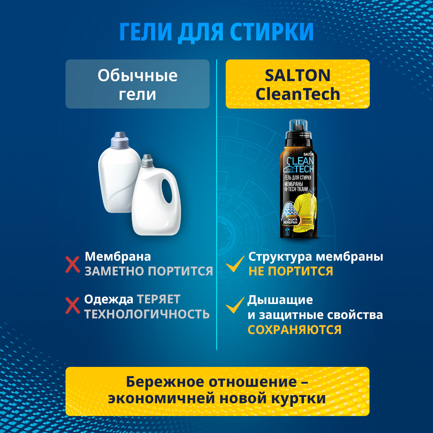 Средство для стирки мембраны, мембранной одежды и спортивных вещей Salton CleanTech, 250 мл интересное: