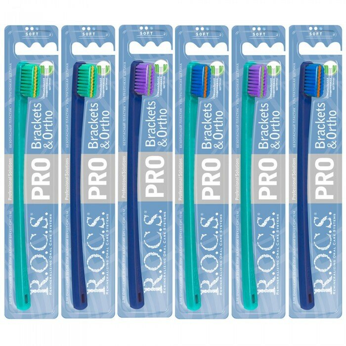 Зубная щетка R. O. C. S. PRO Brackets & Ortho цвет микст, мягкая для брикетов, для ухода за брекетами.