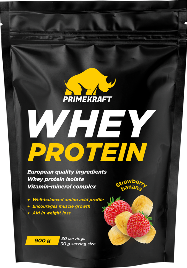 Протеин Prime-Kraft Whey 900г, вкус: клубника и банан