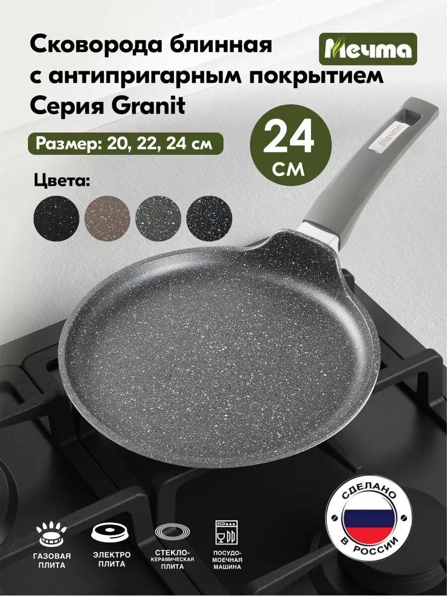 Сковорода блинная Гранит d=24см, антипригарное покрытие, для всех плит (кроме индукции) 14701 Мечта (арт. 817424)