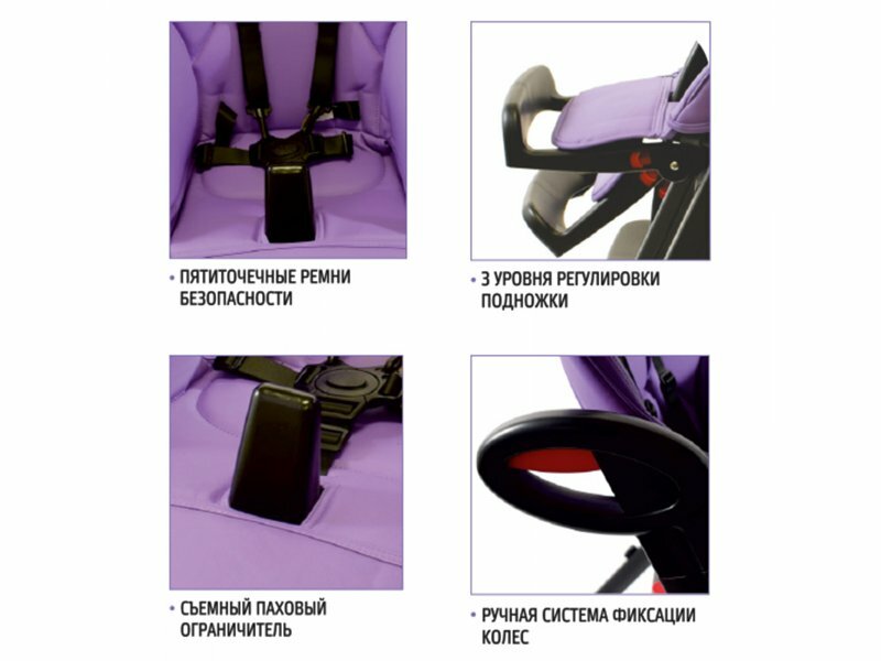 | Плюсы: | - удобное сидение с пятиточечными ремнями фиксации