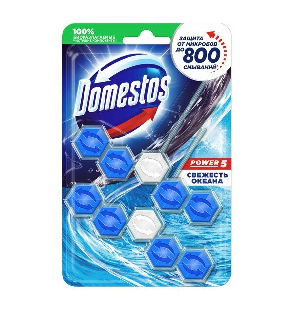 DOMESTOS Блок для очищения унитаза POWER 5 свежесть океана 55 гр