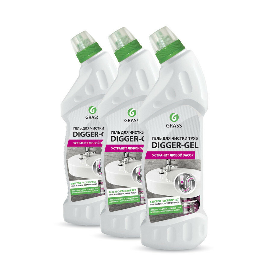 Купить Grass Средство щелочное для прочистки канализационных труб анти-засор Digger-Gel, 750 мл - 3 шт