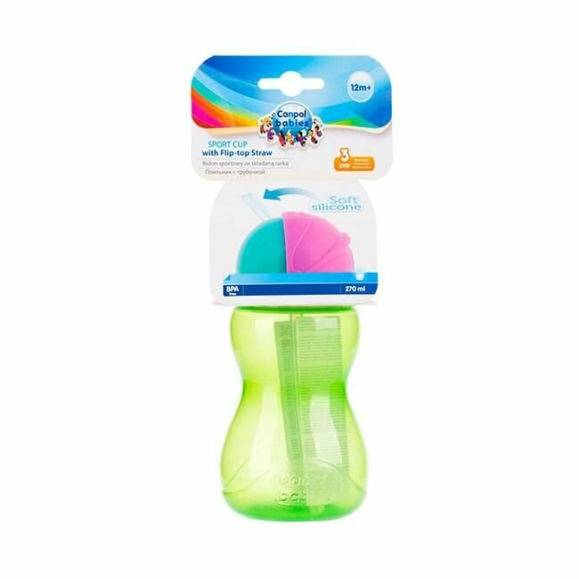 Спортивный поильник-непроливайка Canpol Babies SportCup с силиконовой трубочкой, 270мл, зеленый