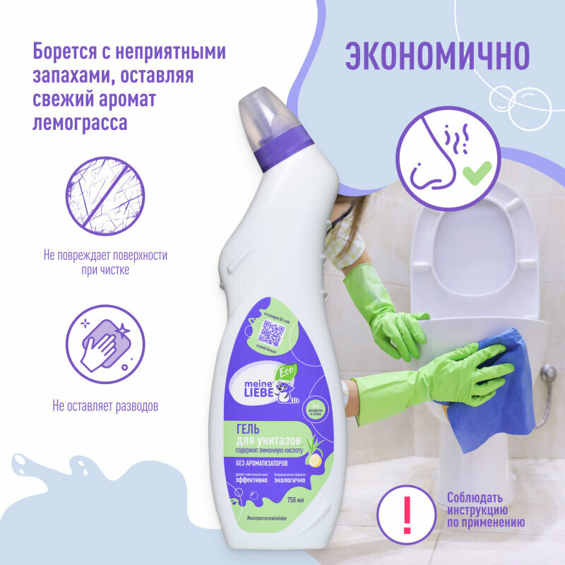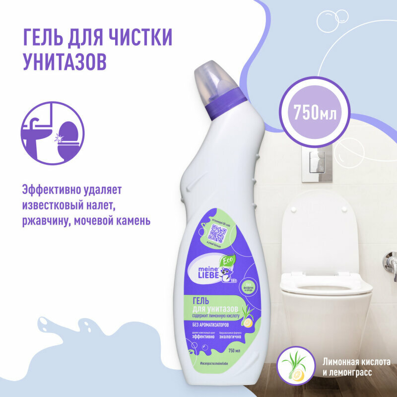 MEINE LIEBE Чистящий ЭКО-Гель для унитазов без хлора и фосфатов на основе лимонной кислоты, 750мл ML33102