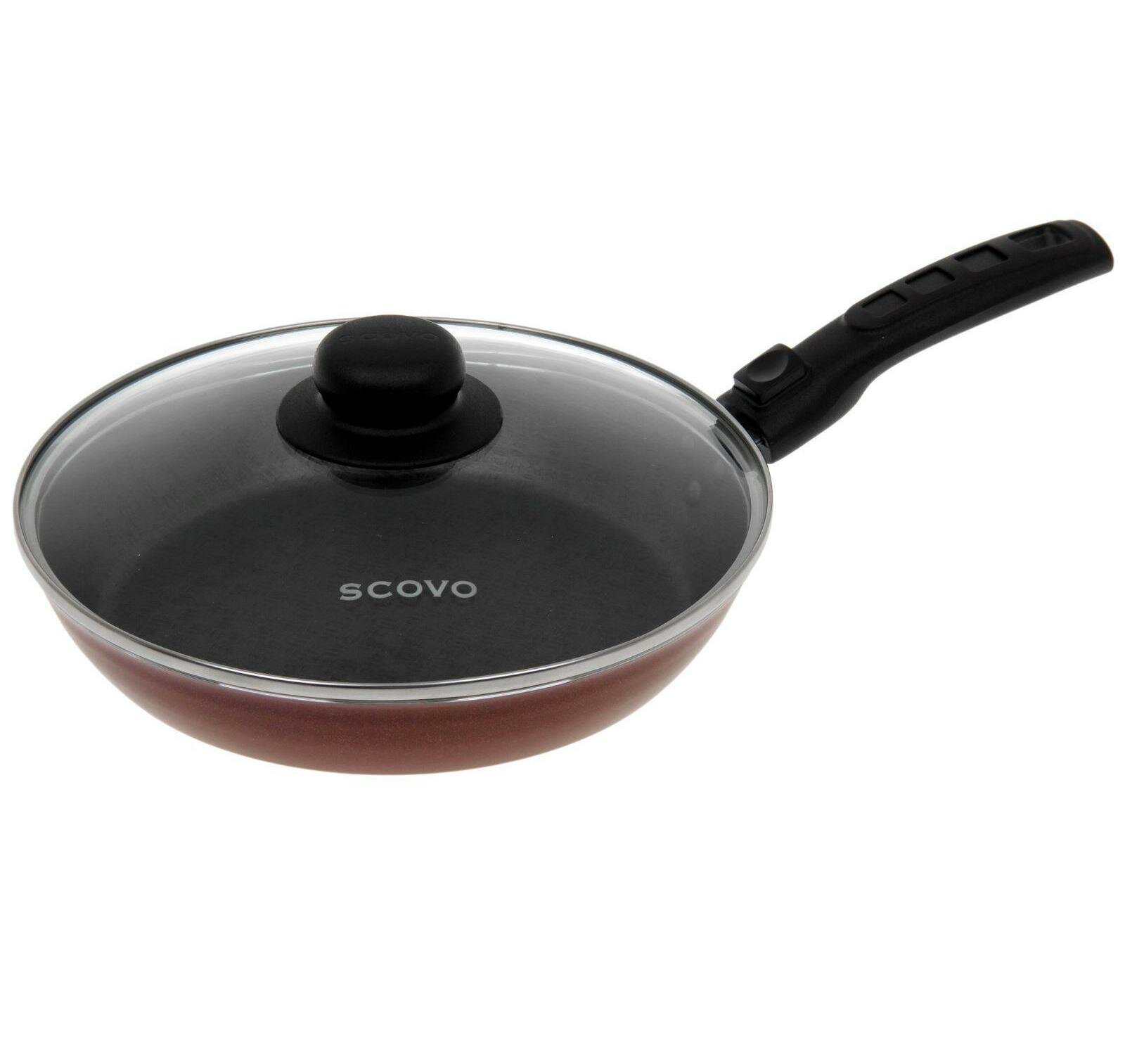 SCOVO Сковорода «Альфа», d=20 см, съёмная ручка, стеклянная крышка, антипригарное покрытие, цвет бордовый