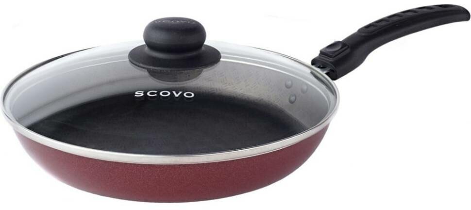 SCOVO Сковорода «Альфа», d=20 см, съёмная ручка, стеклянная крышка, антипригарное покрытие, цвет бордовый